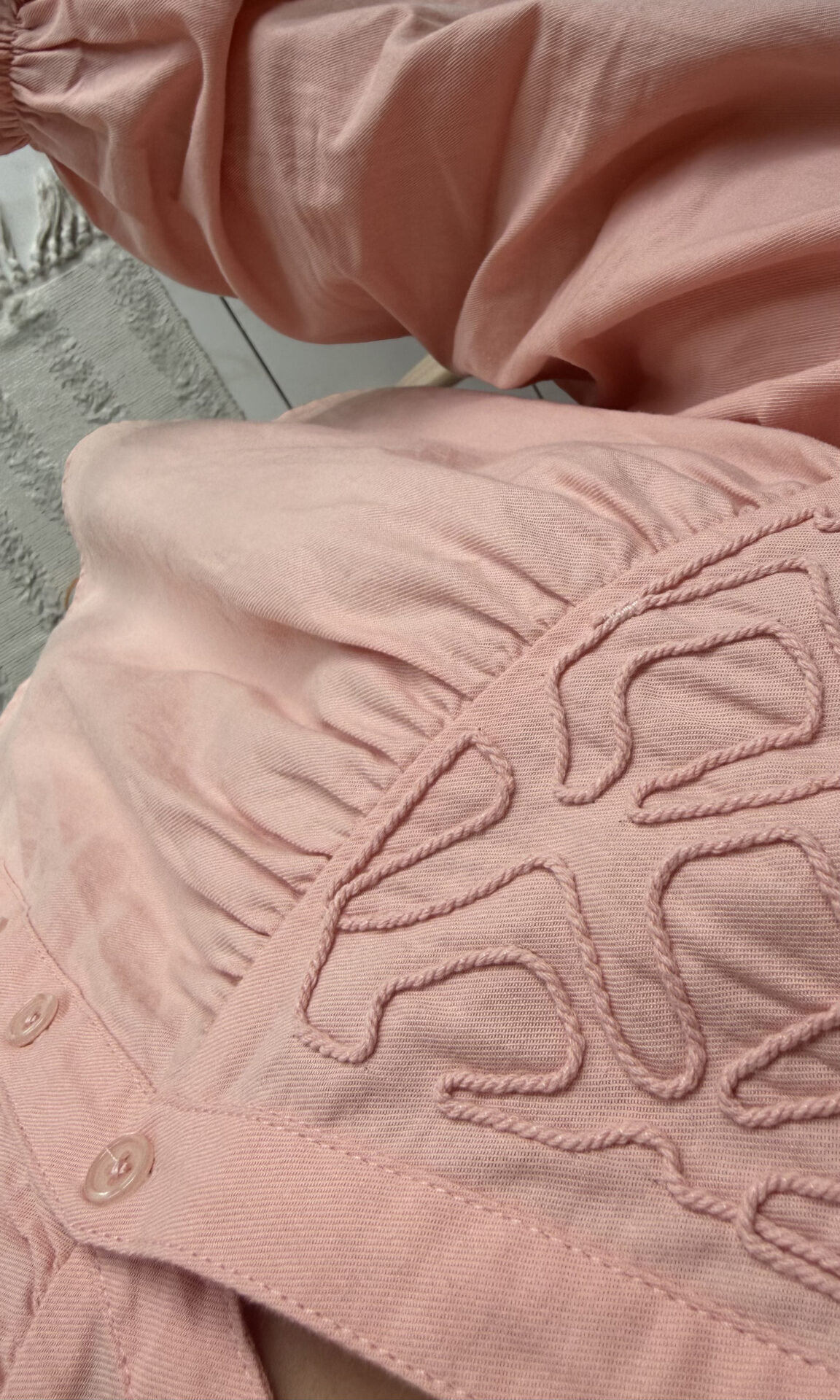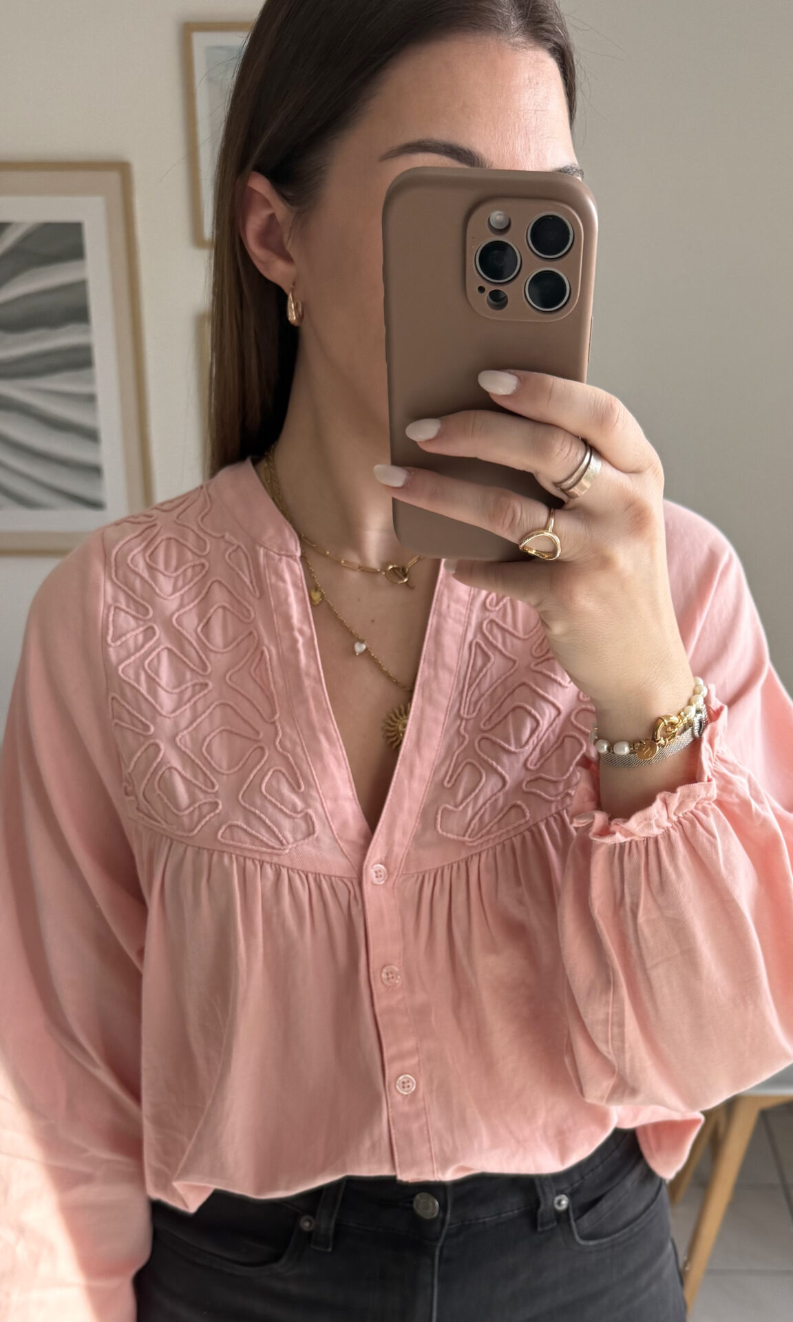 Apportez une touche de douceur & d’élégance à votre dressing avec la blouse Azalée d’un rose saumon lumineux. Ses délicates broderies & ses manches bouffantes ajoutent une note bohème chic très tendance !