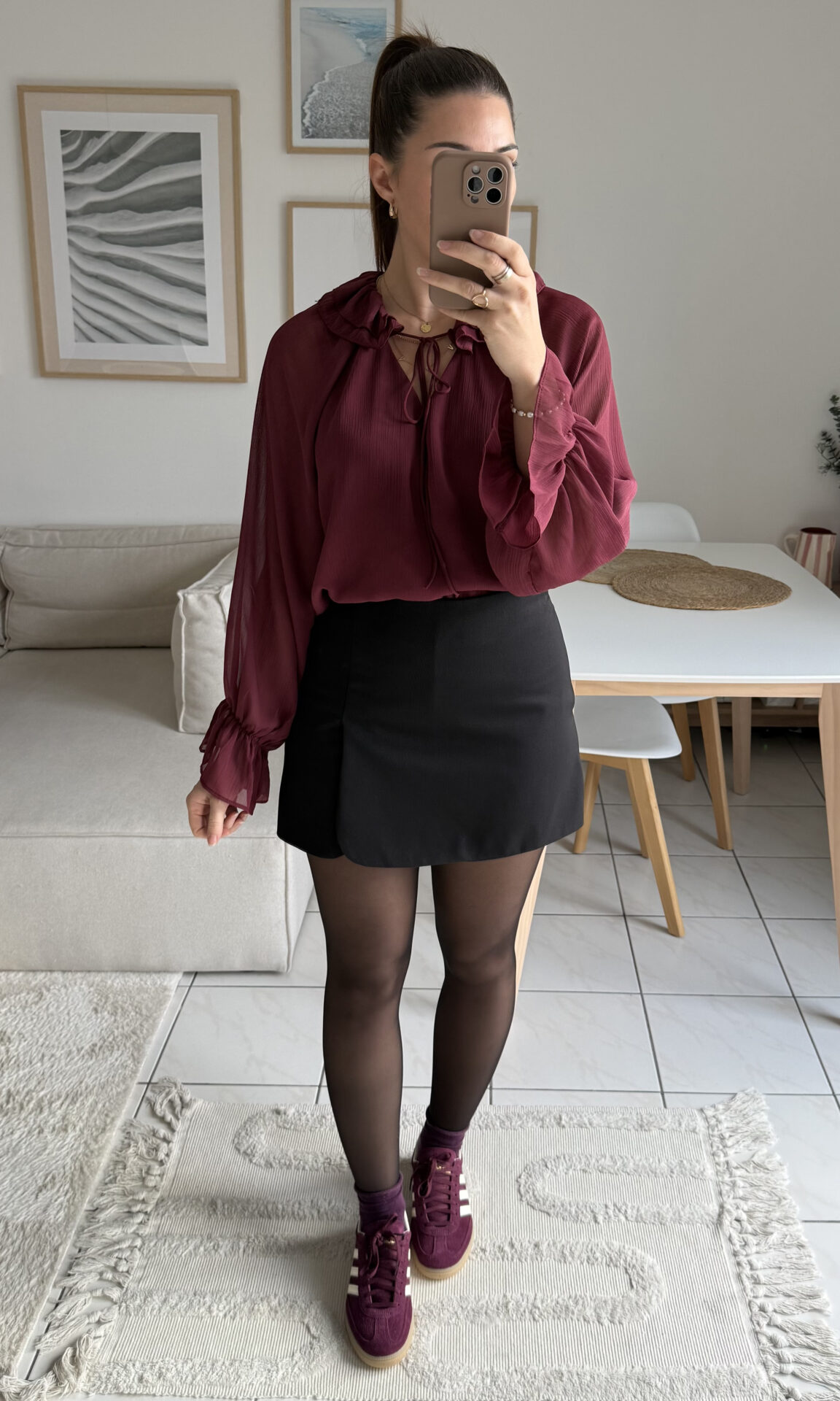 – Couleur burgundy : bordeaux intense, parfaite pour l’automne/hiver