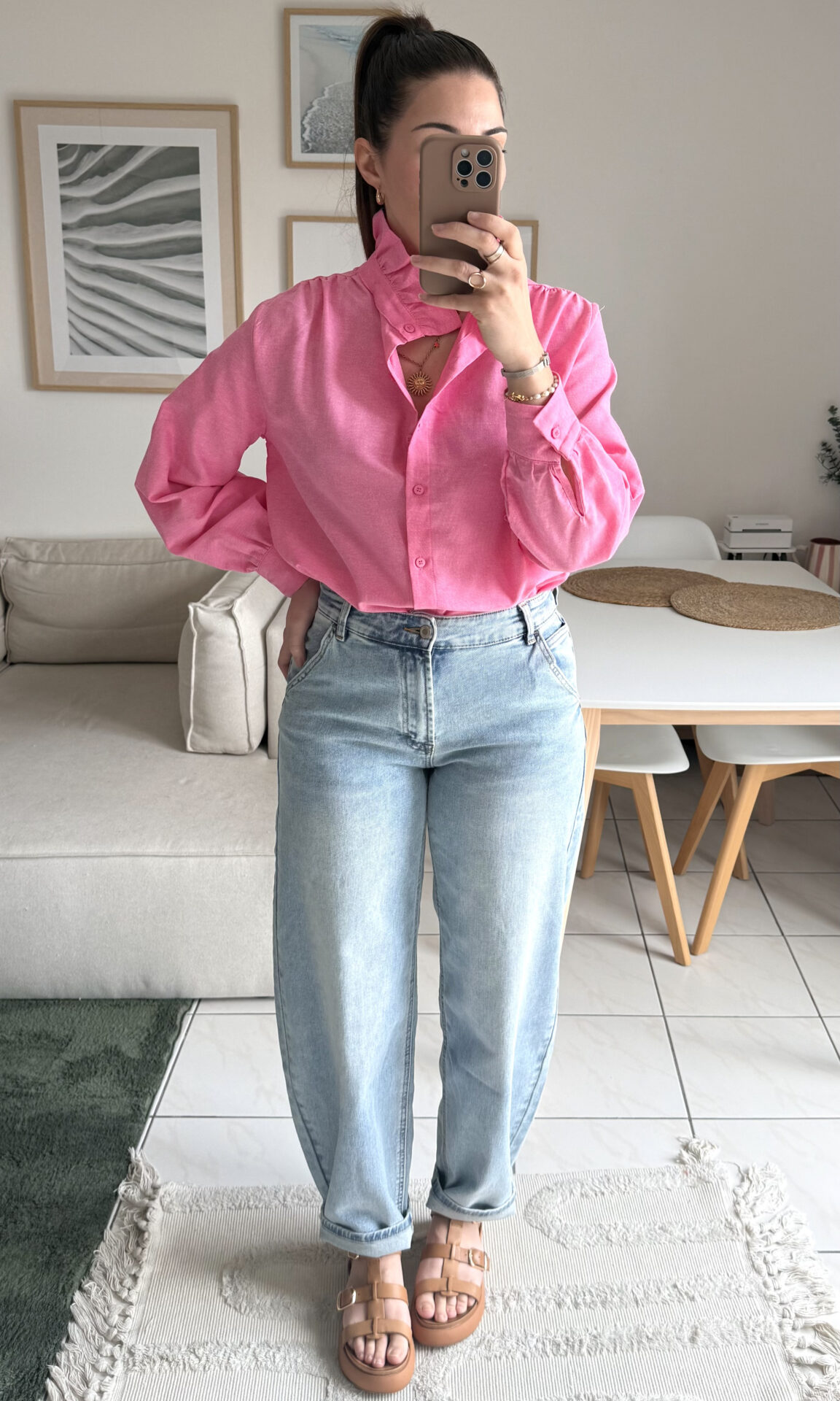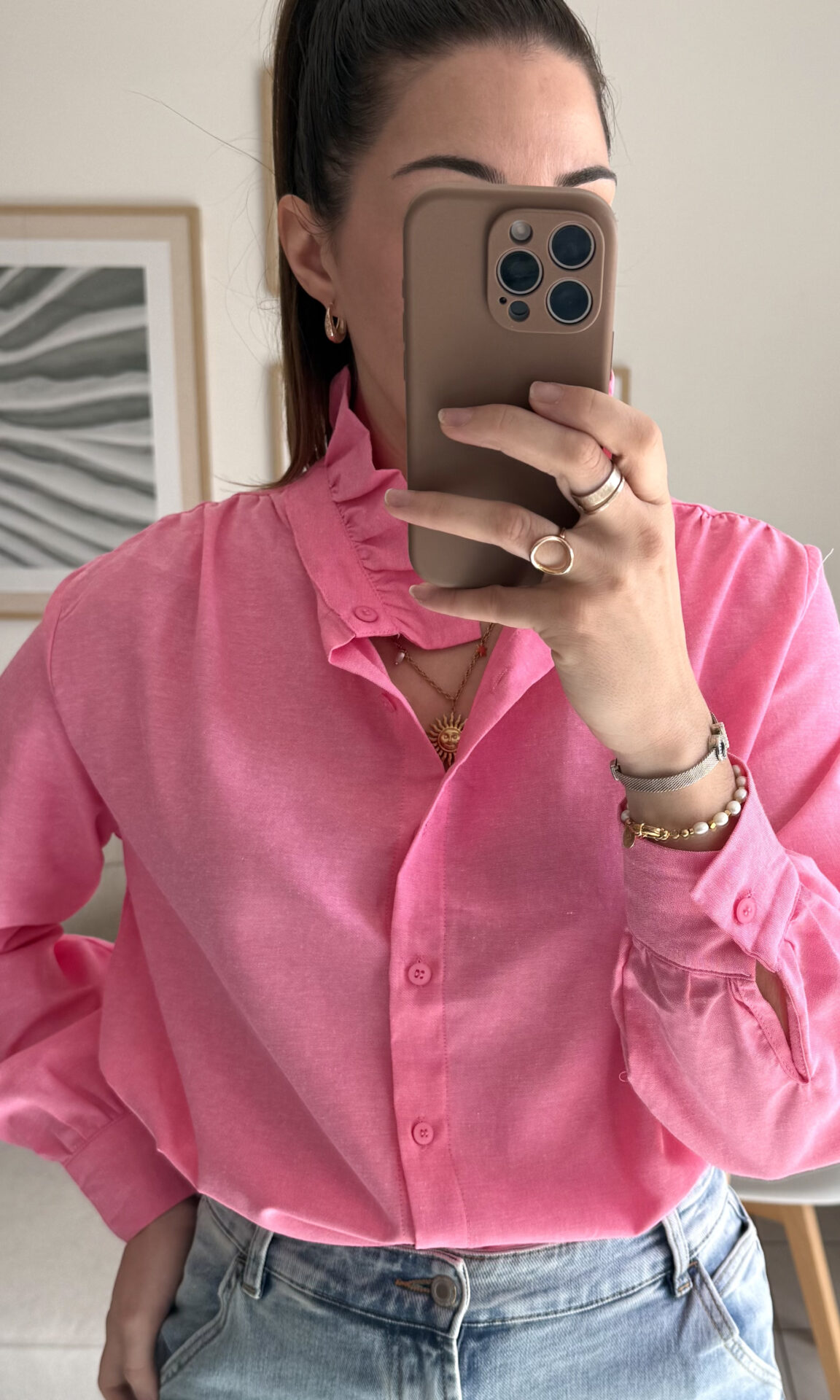 Craquez pour notre chemise Lina : intemporelle par sa coupe classique, élégante par son délicat col à volants & audacieuse par sa couleur rose fushia vibrante ! Parfaite pour dynamiser & sublimer vos tenues avec style !