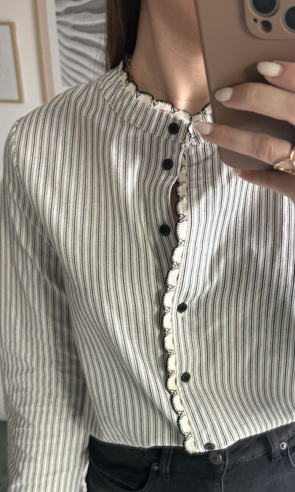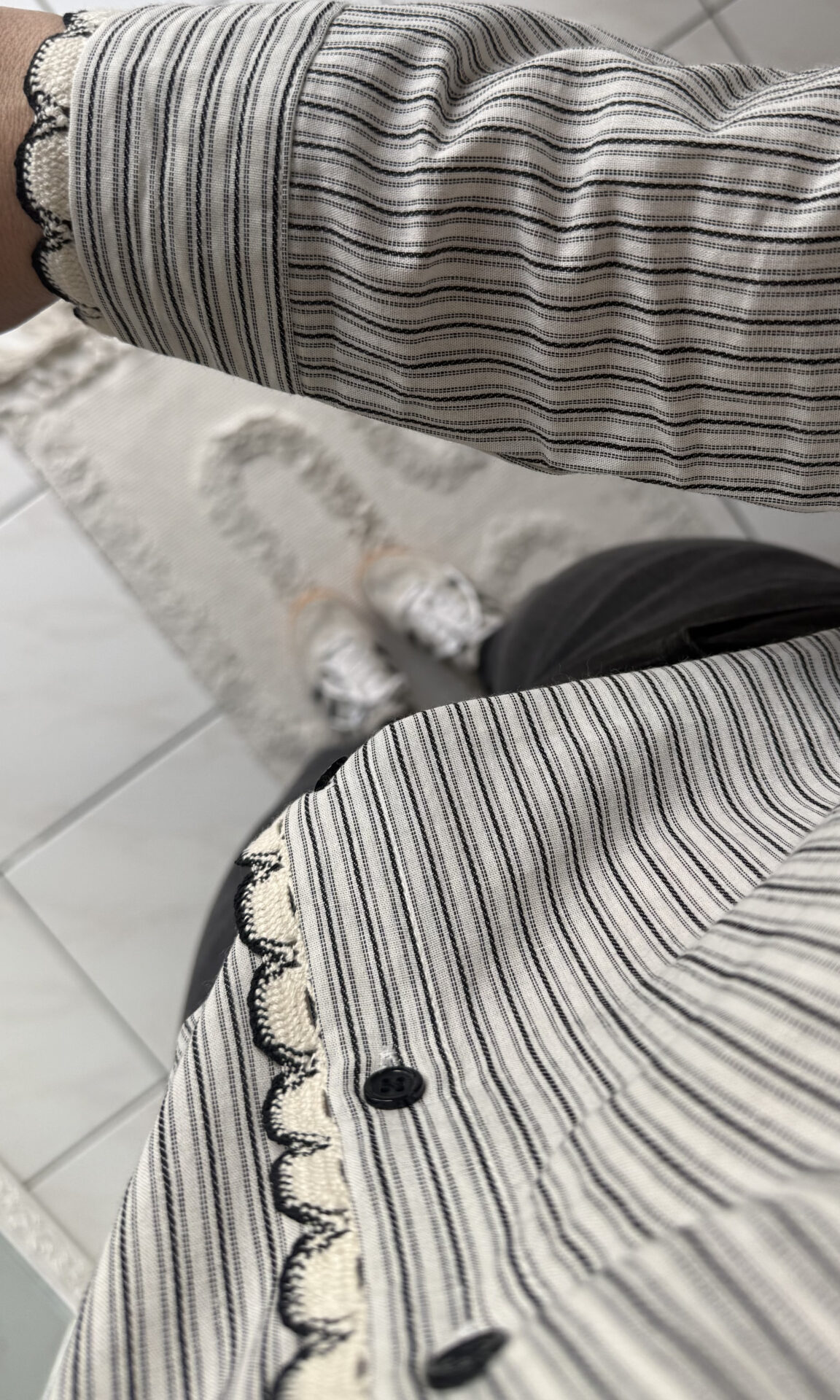 Optez pour l’élégance graphique de cette chemise à rayures. Ses détails brodés au niveau des poignets et du col Mao apportent une touche contemporaine & raffinée !