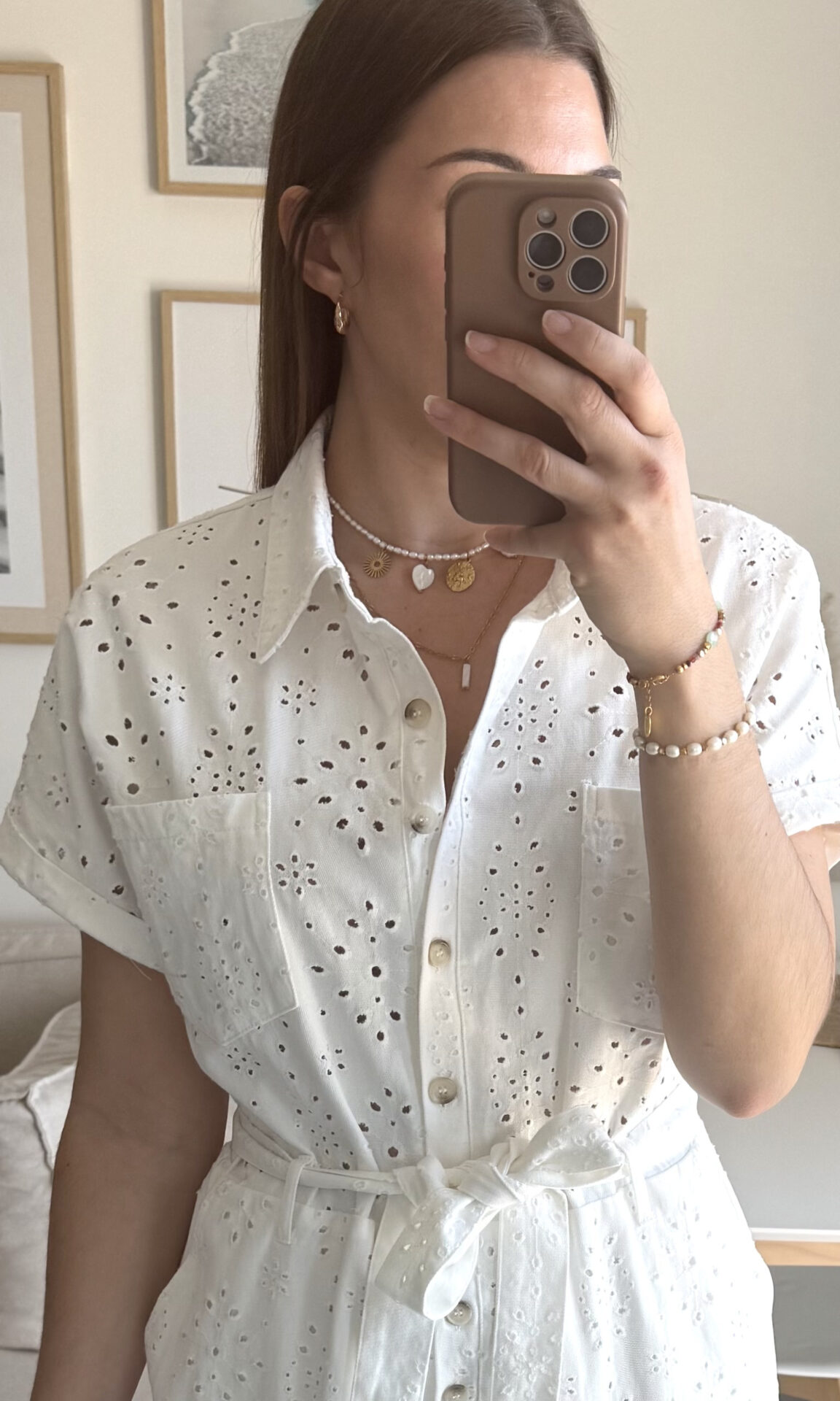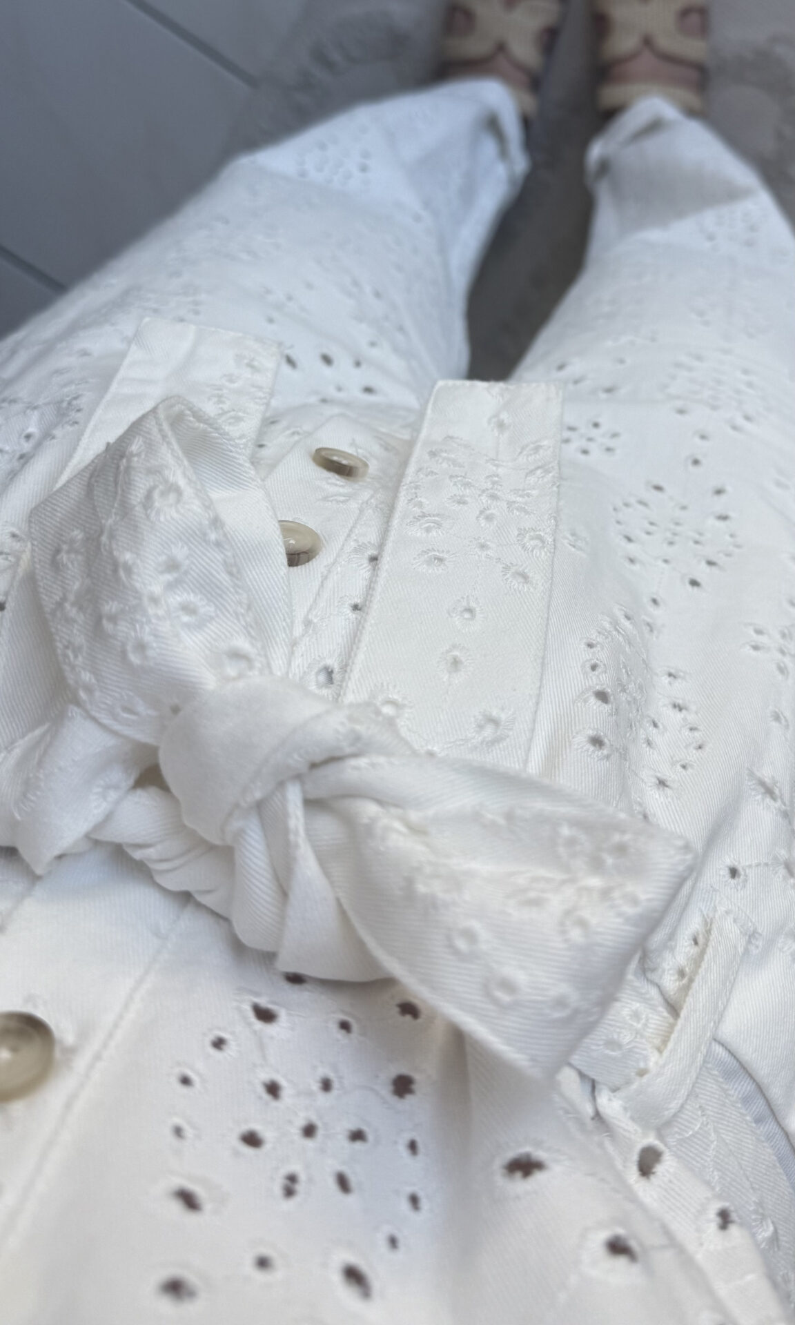 – Fleurs brodées ajourées en fil ton sur ton
