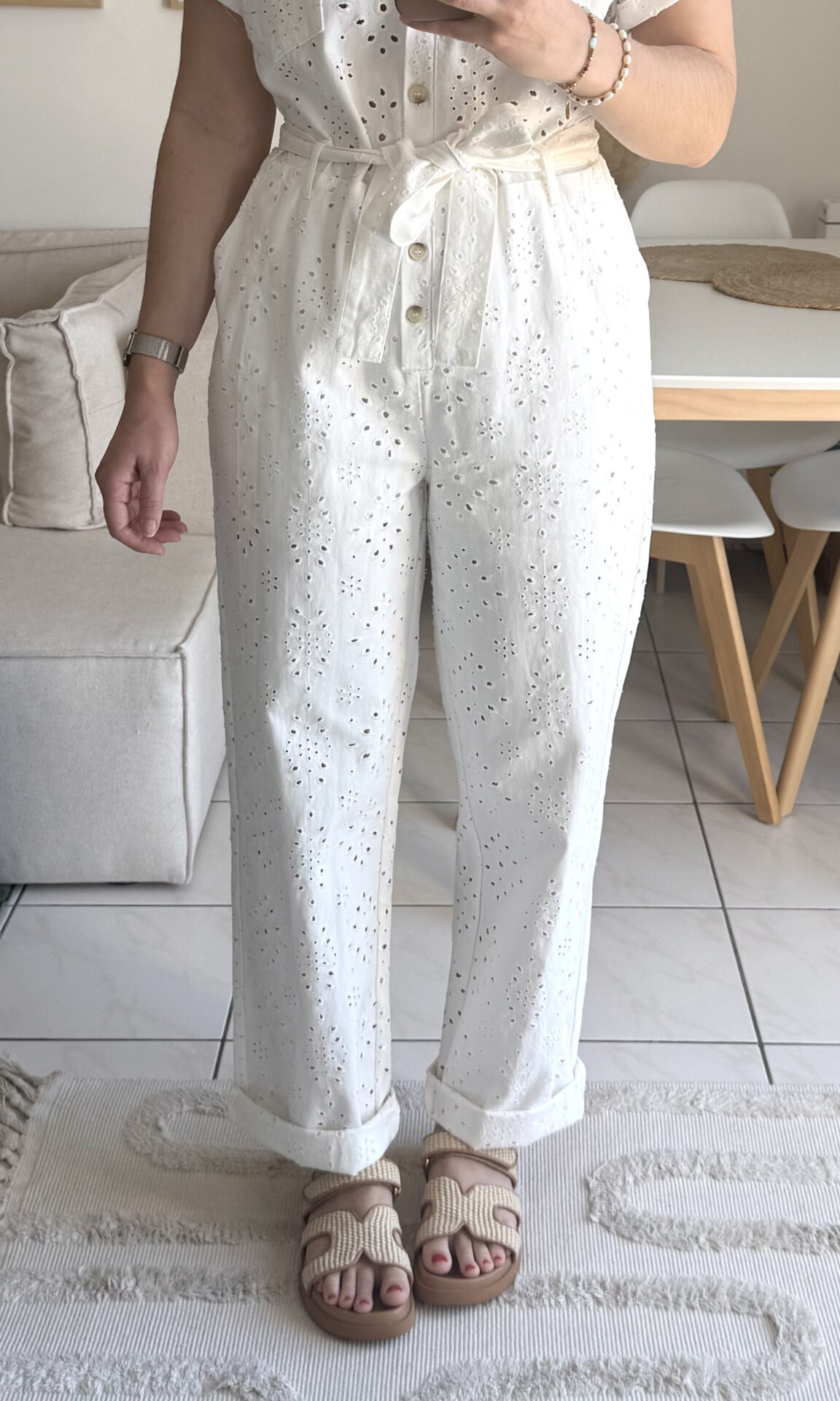 – Bas du pantalon volontairement retroussés par 2 fois pour mon 1m68 (avec la taille M/L)