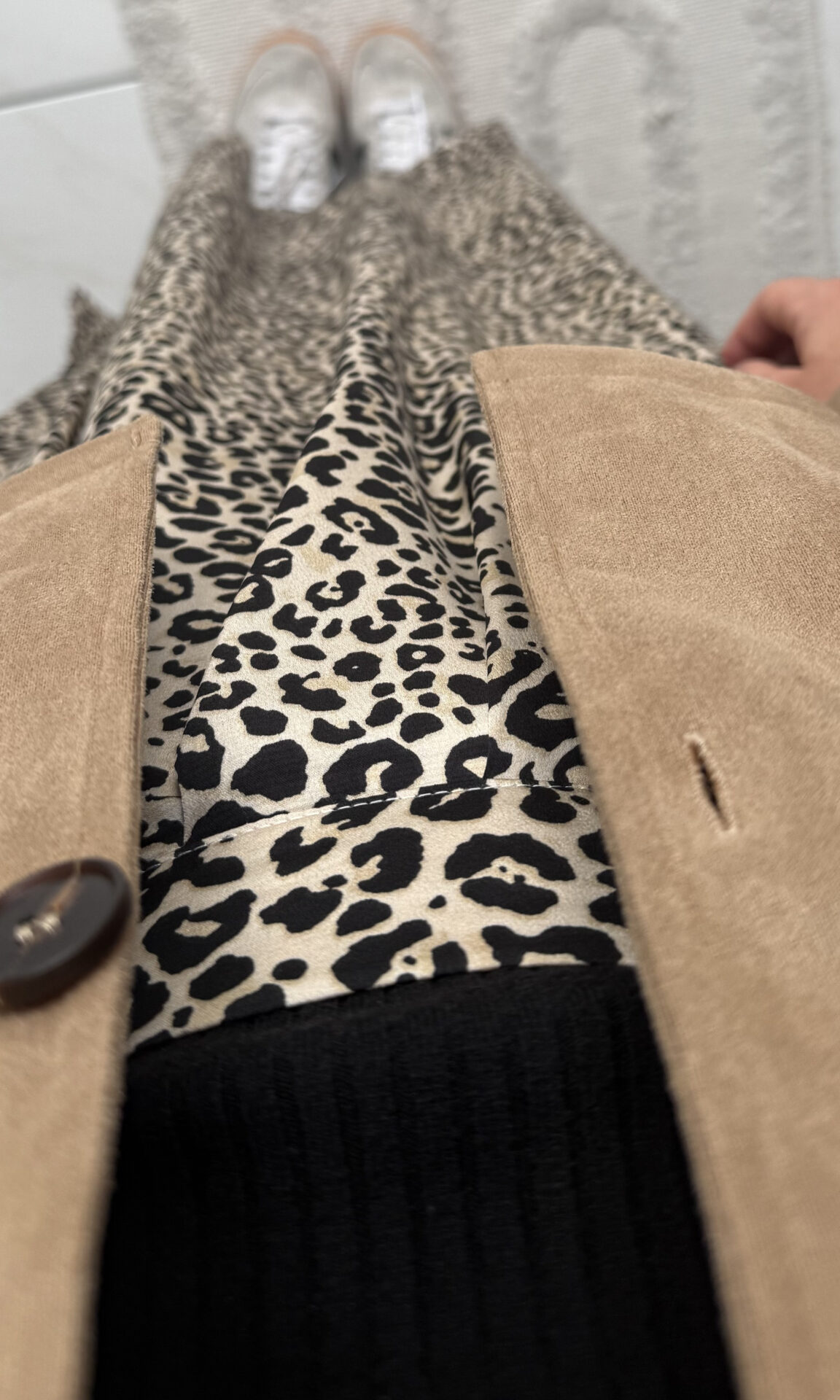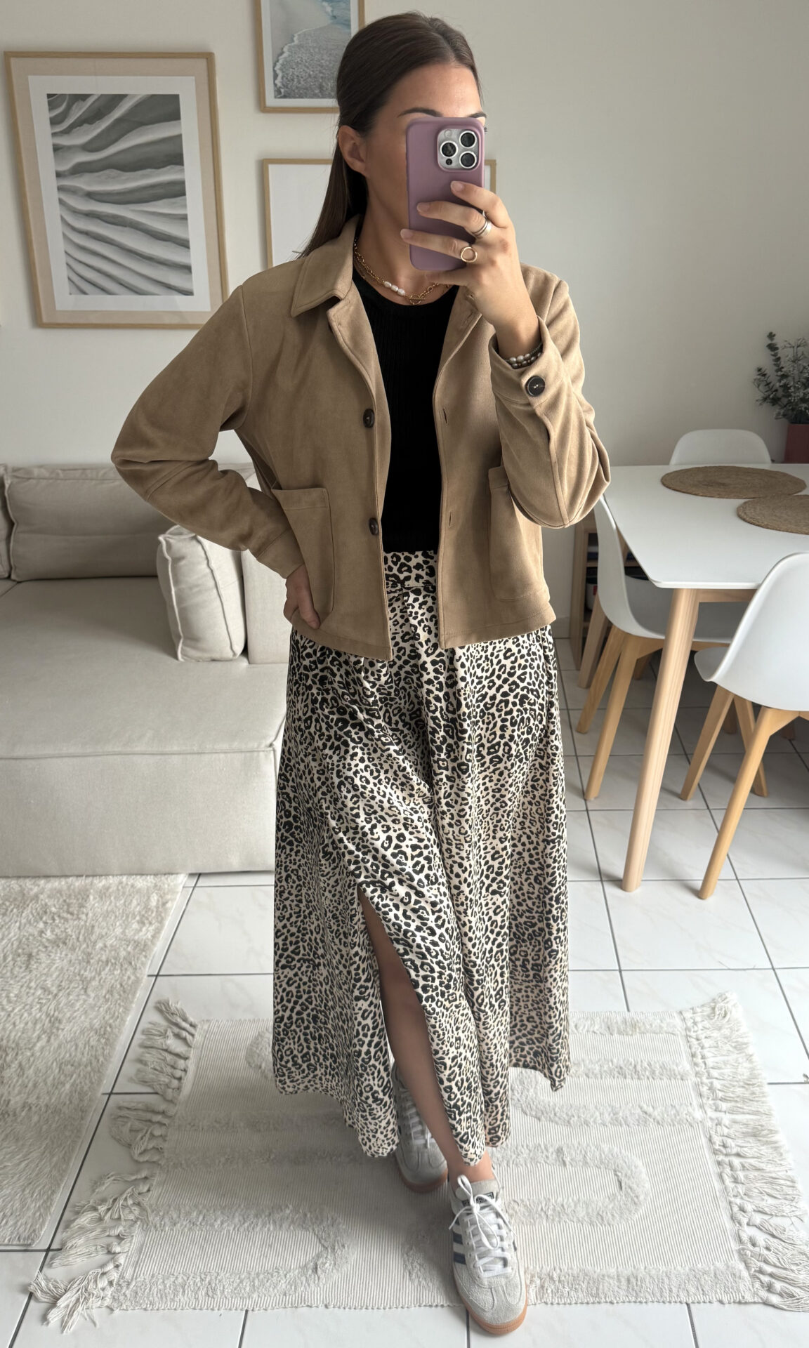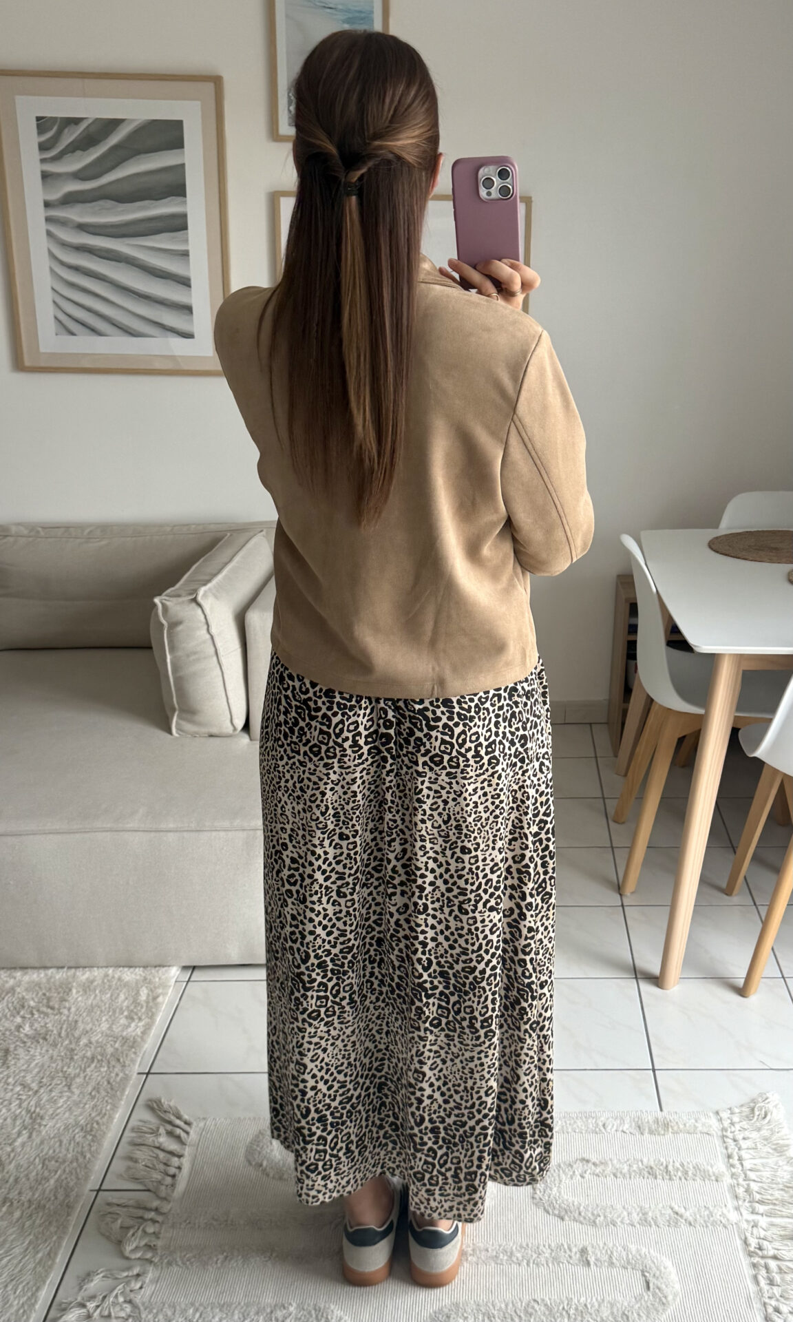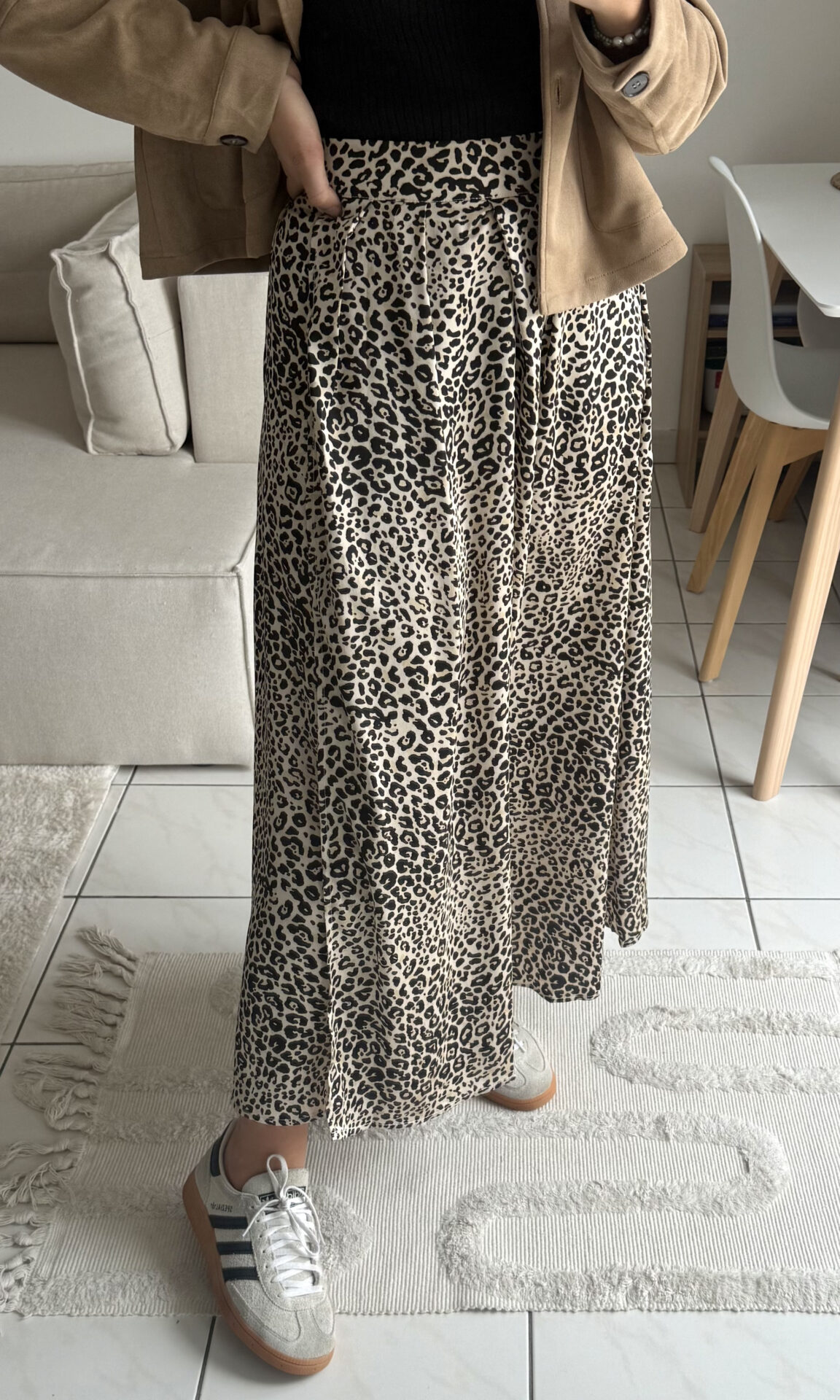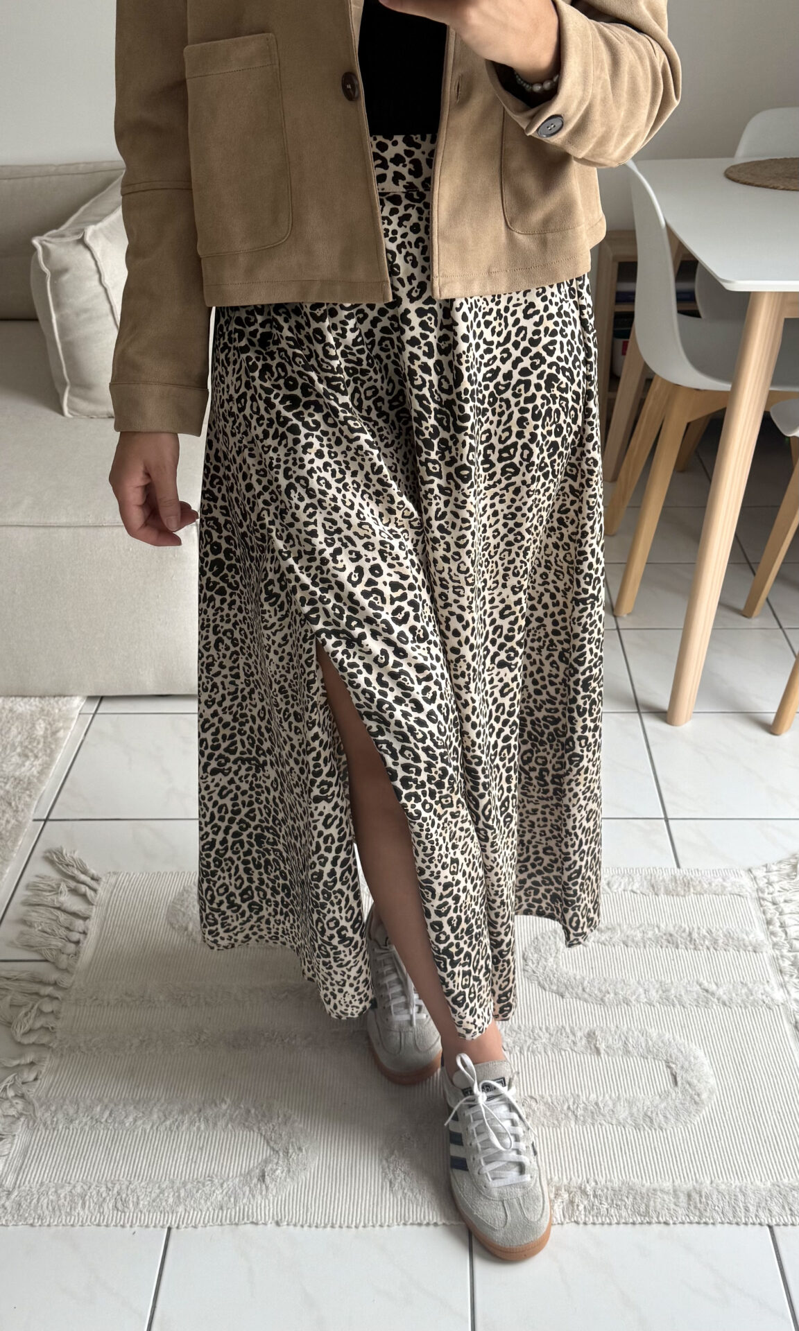 Félina, la jupe longue audacieuse & élégante ! Son effet satiné & son intemporel imprimé léopard lui apporte une touche chic. Opte pour une chemise en denim ou un t-shirt basique & des baskets pour un look casual chic !