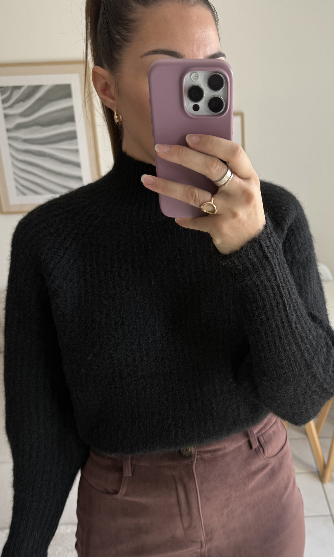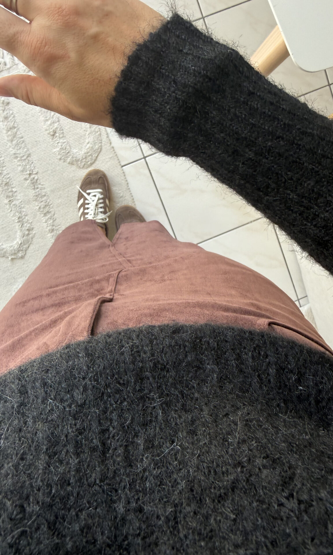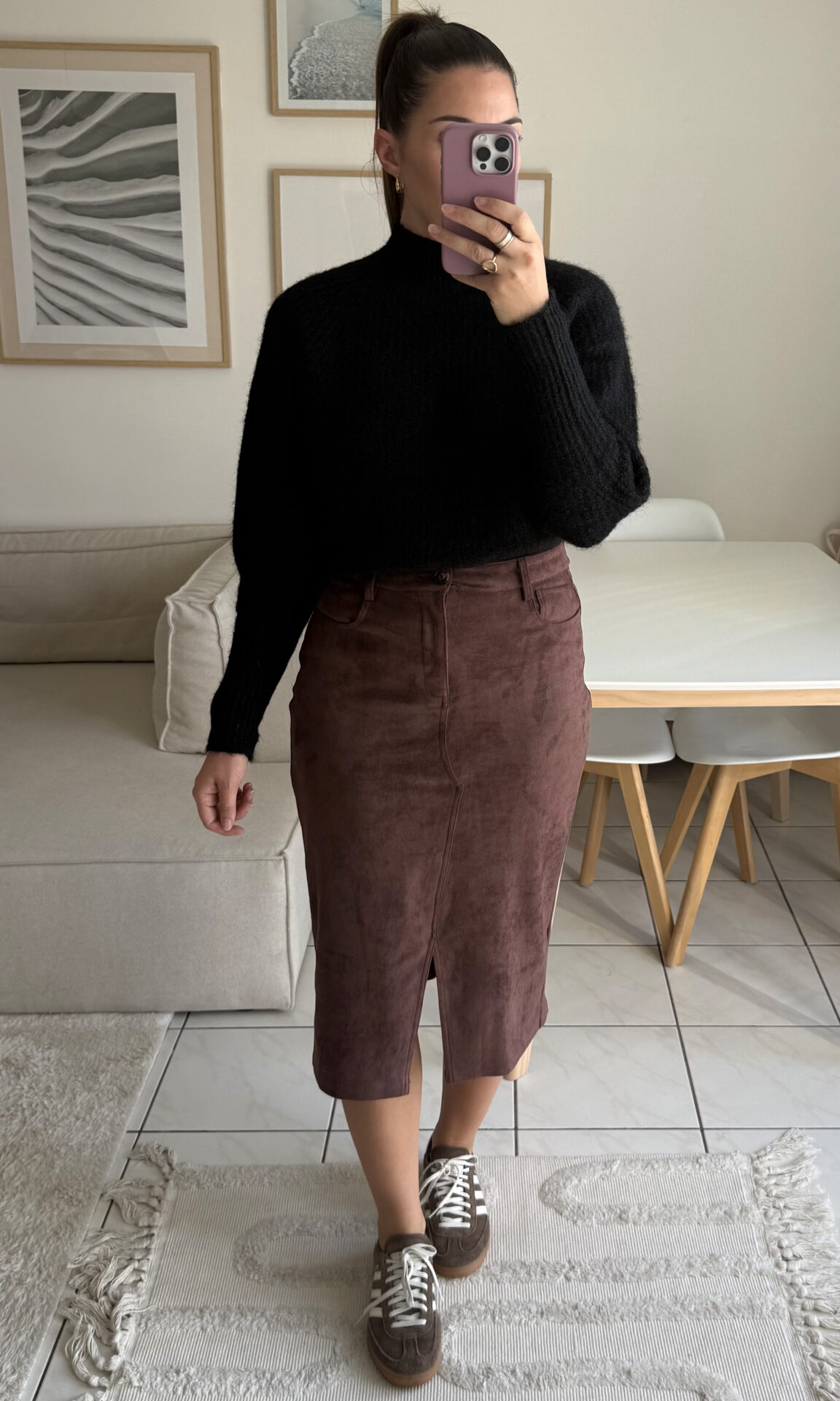 – Ici associé à la jupe Swann en suédine