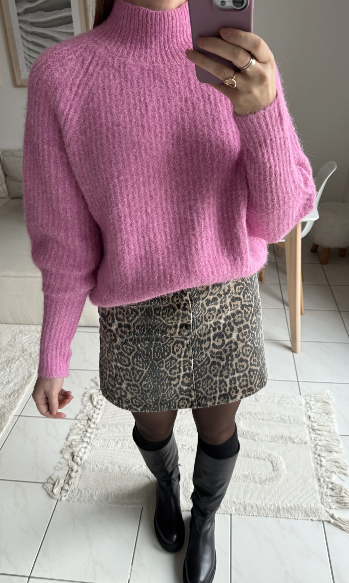 Comment ne pas craquer pour la douceur de ce pull rose côtelé ! Un rose chiné pour illuminer vos looks automnaux !