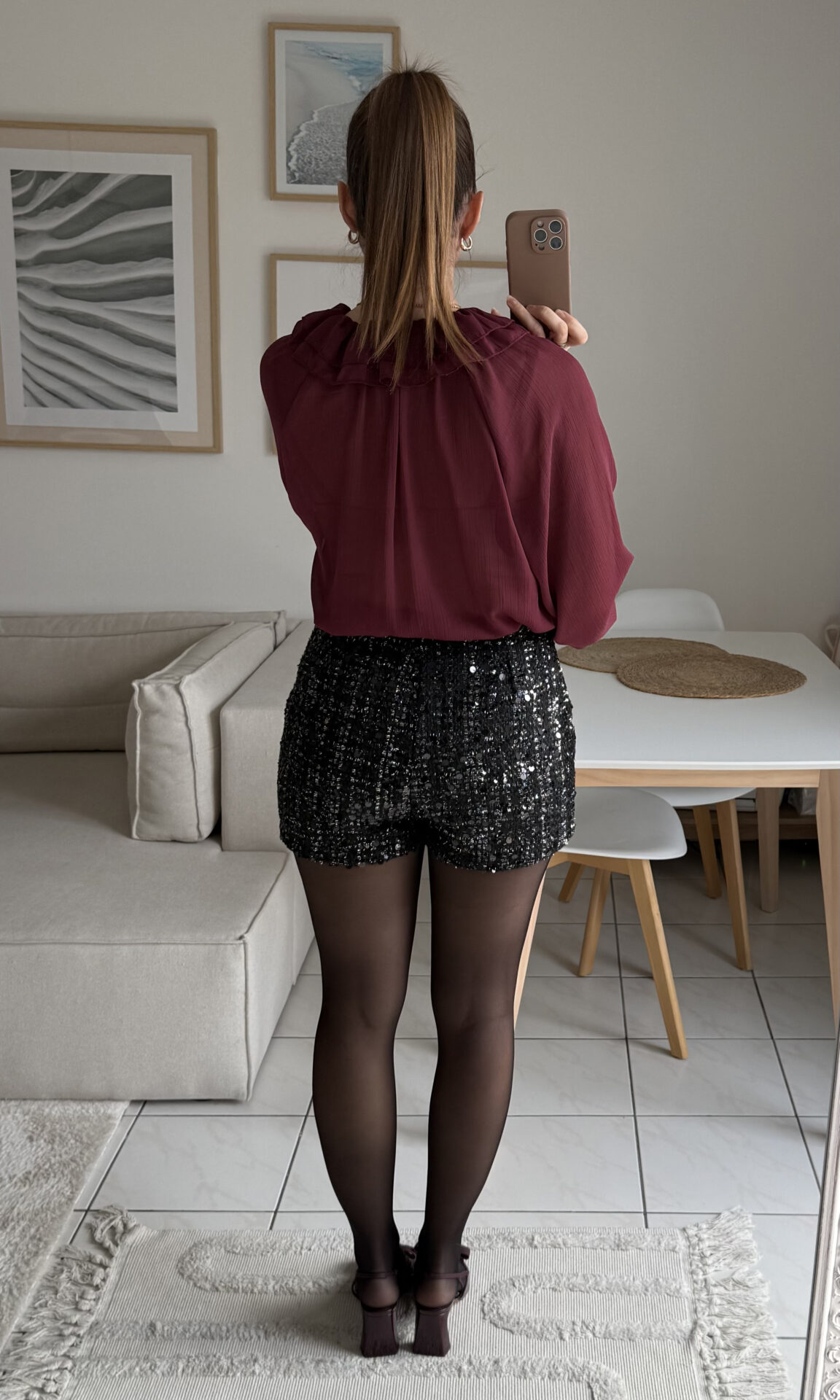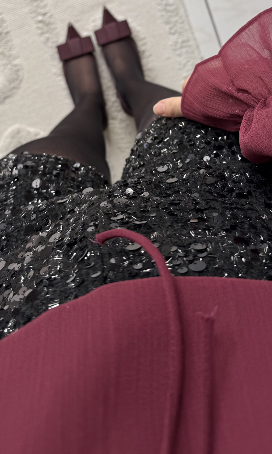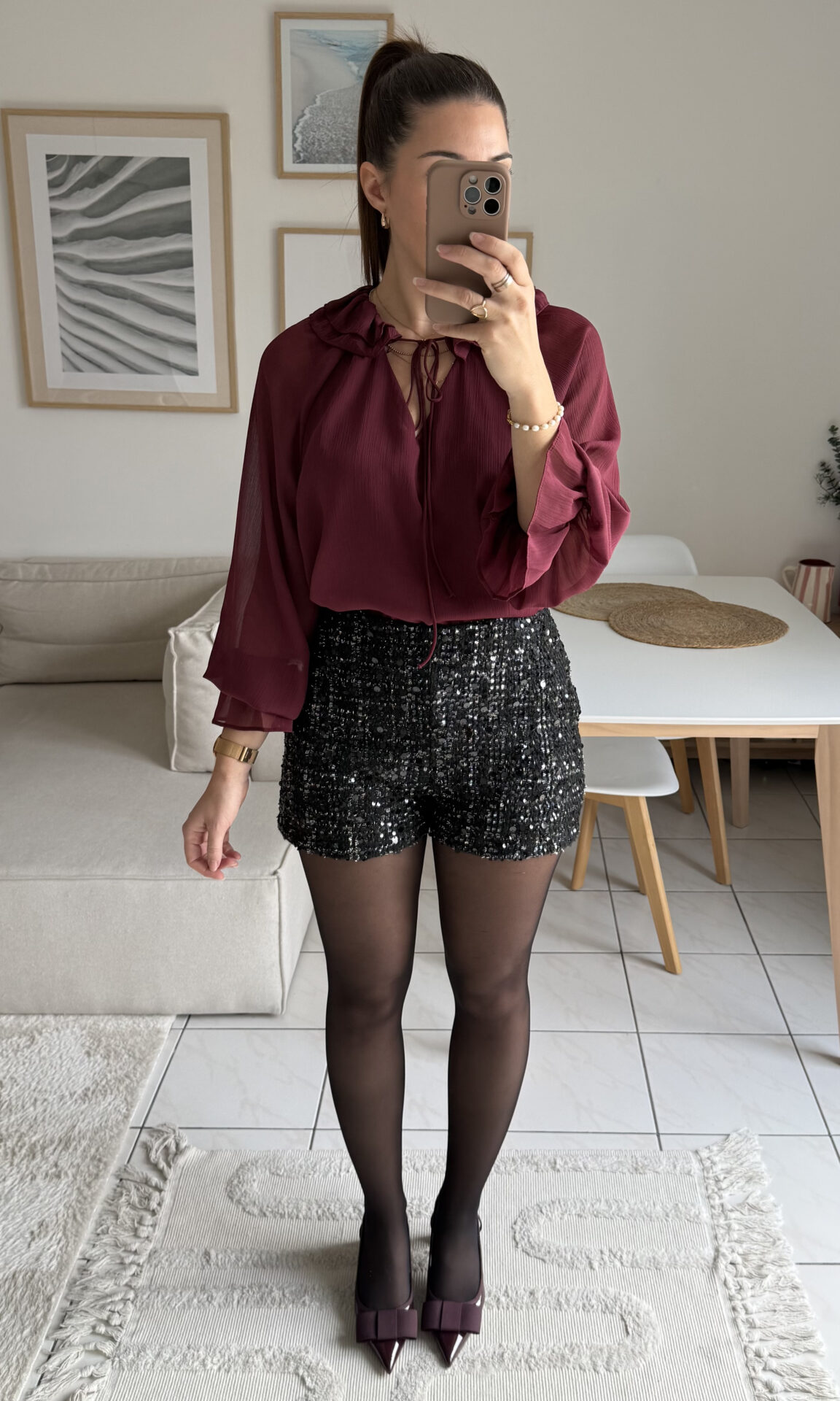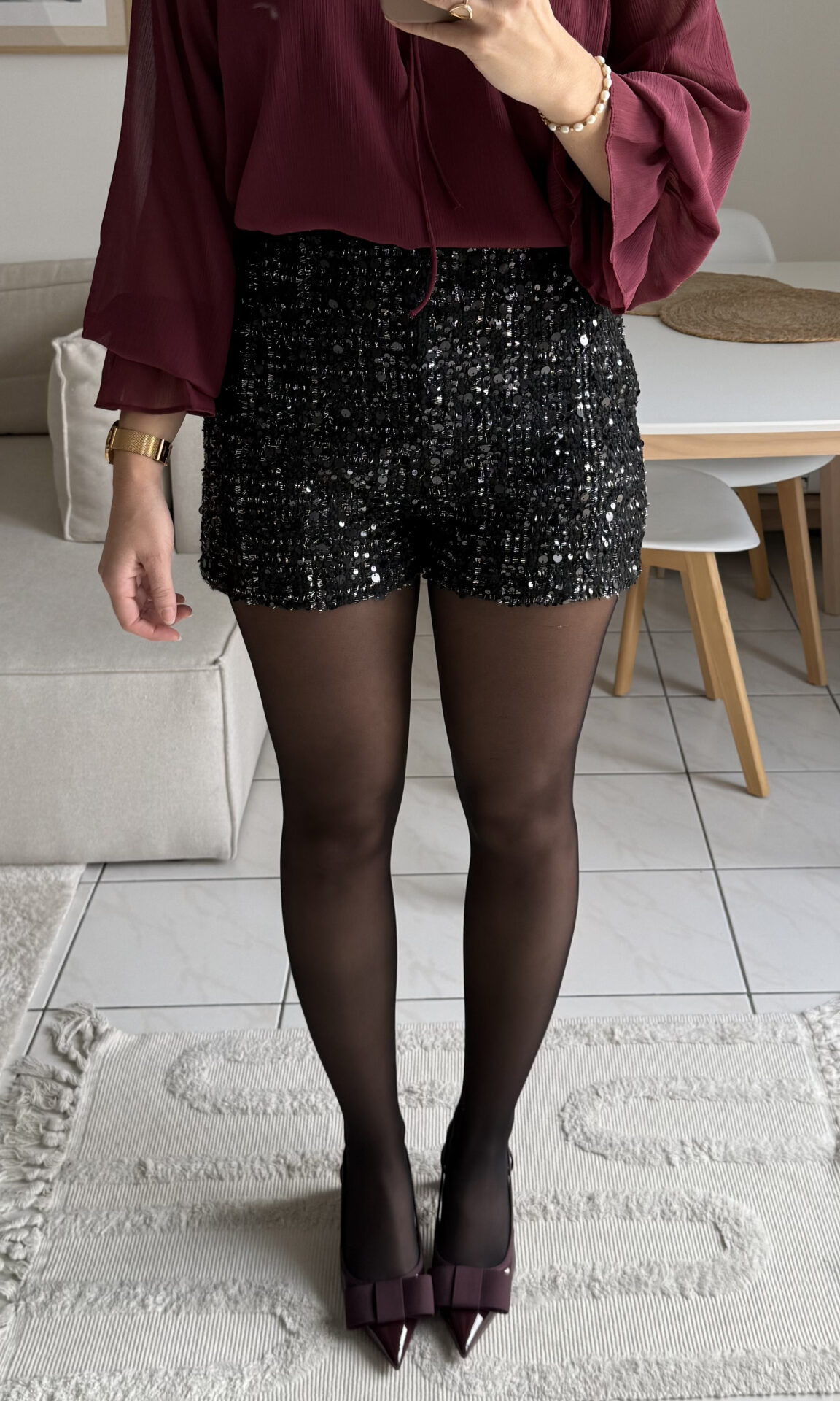 – Ici associé à la blouse Memphys & des talons burgundy pour un look chic & élégant