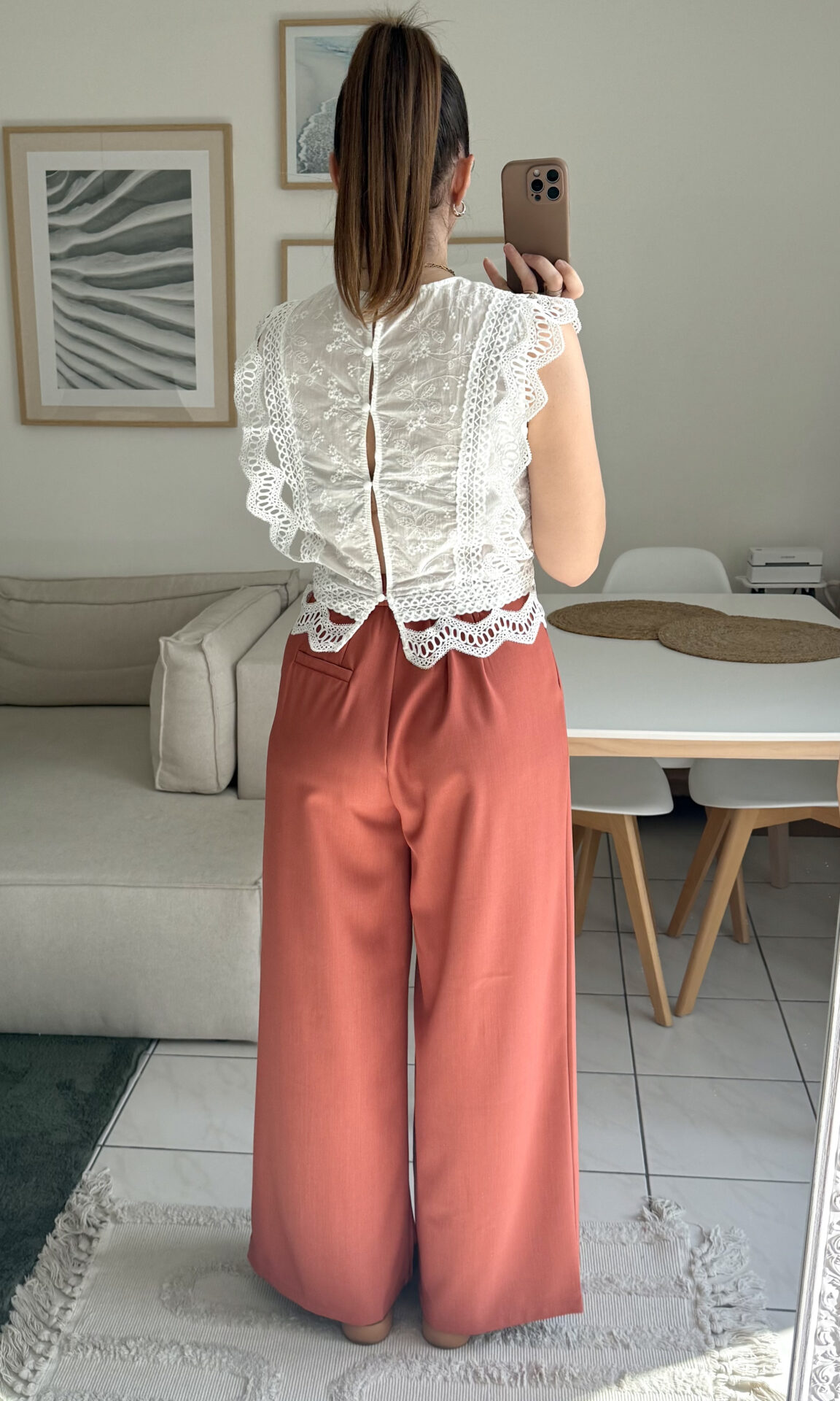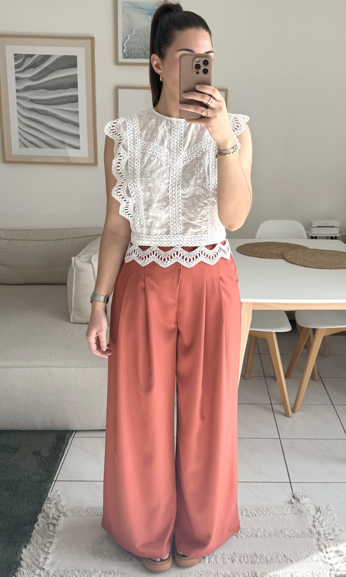 – Ici associé au jean dad-fit Naël pour une tenue casual-chic et au pantalon palazzo Giulio pour un look frais & élégant