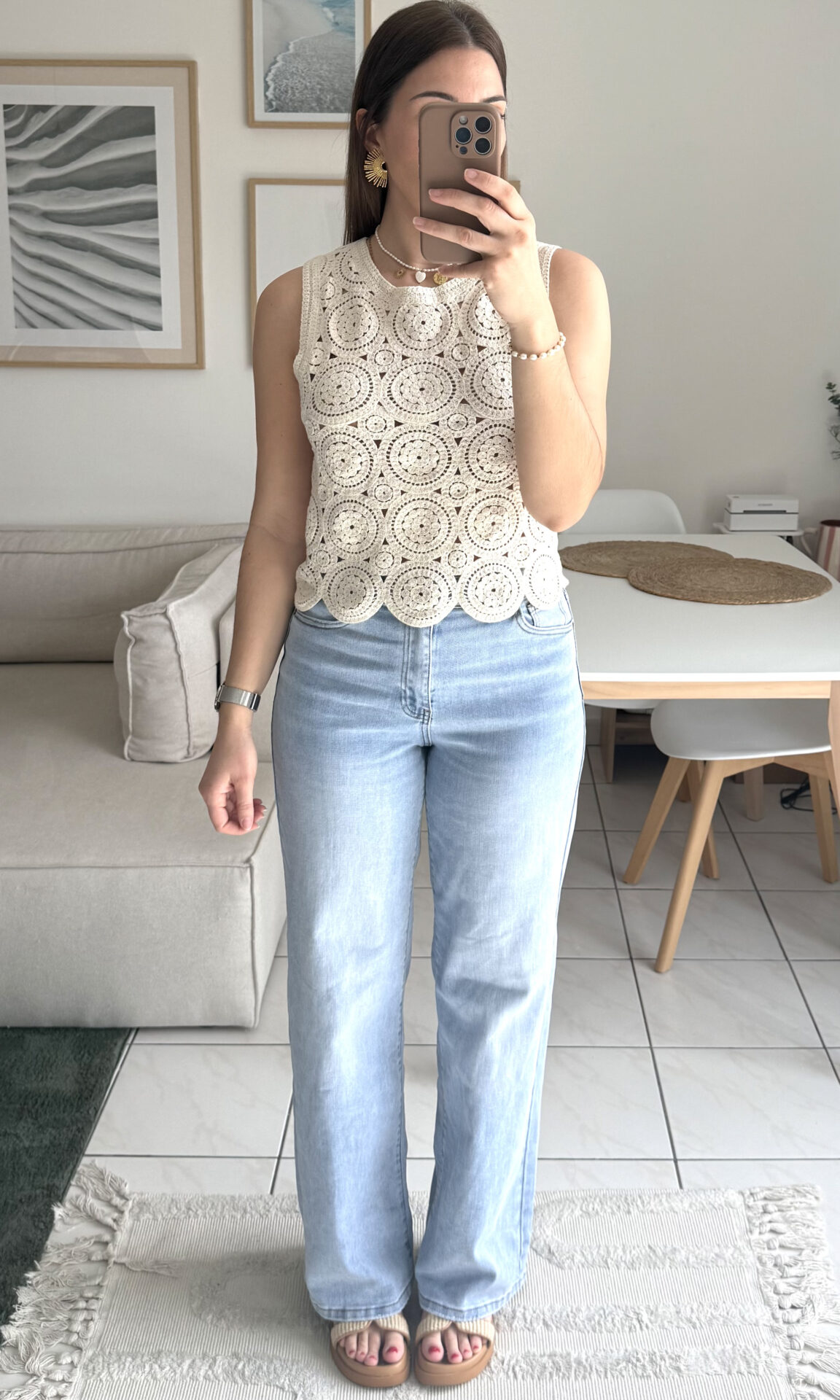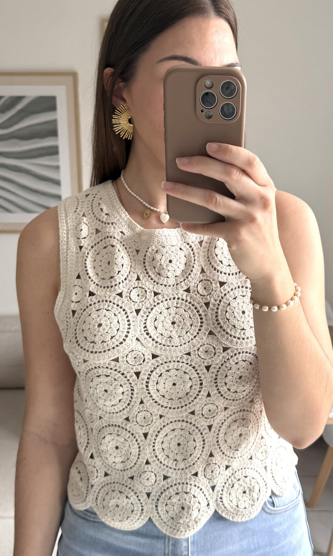 Il séduit par son style artisanal, son beige naturel & son esprit bohème chic, le top en crochet Aël est idéal pour un look élégant & féminin sans effort !