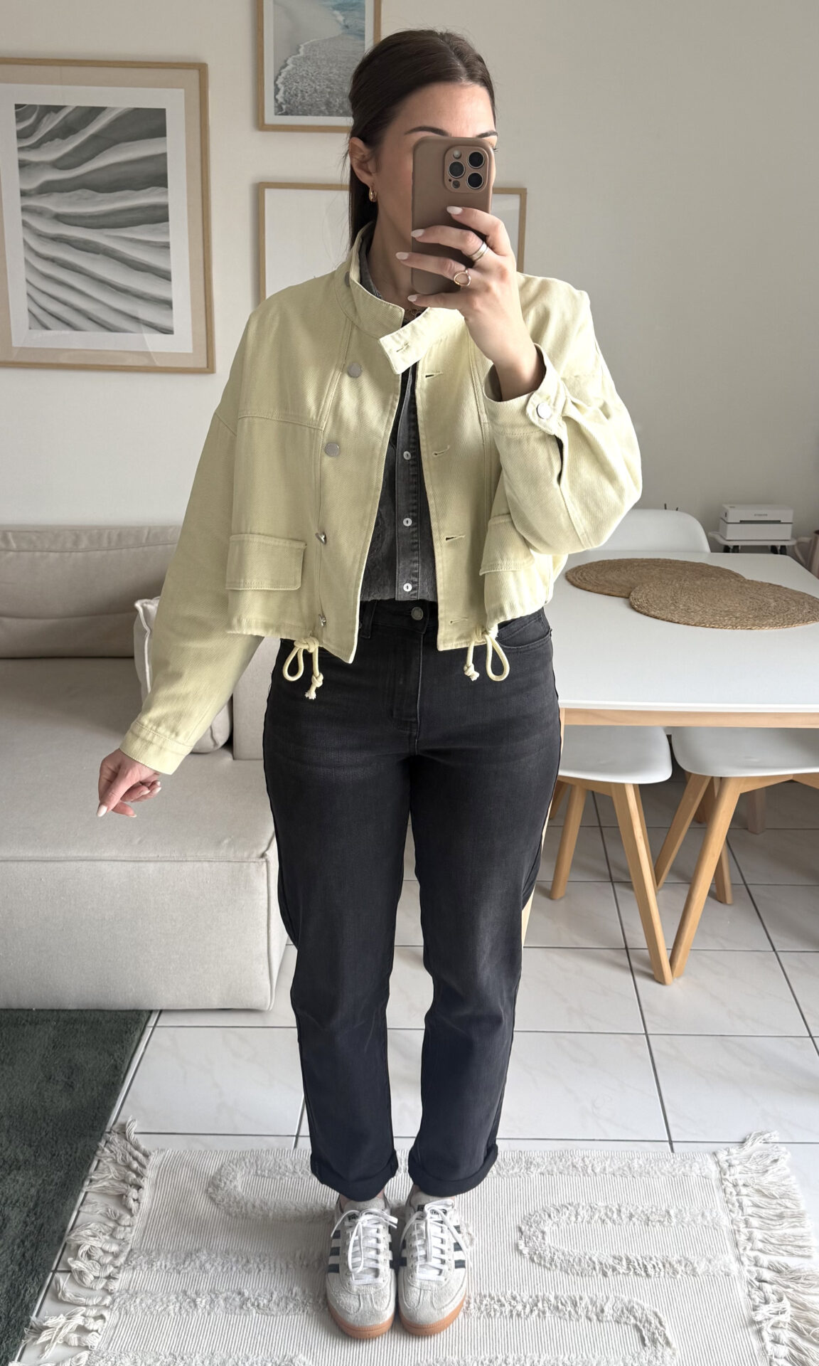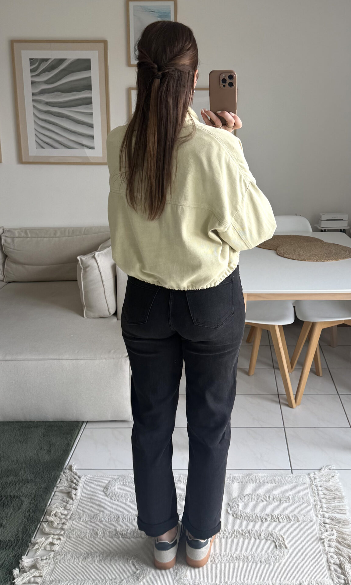 – Ici associée au jean mom Jules pour un look affirmé