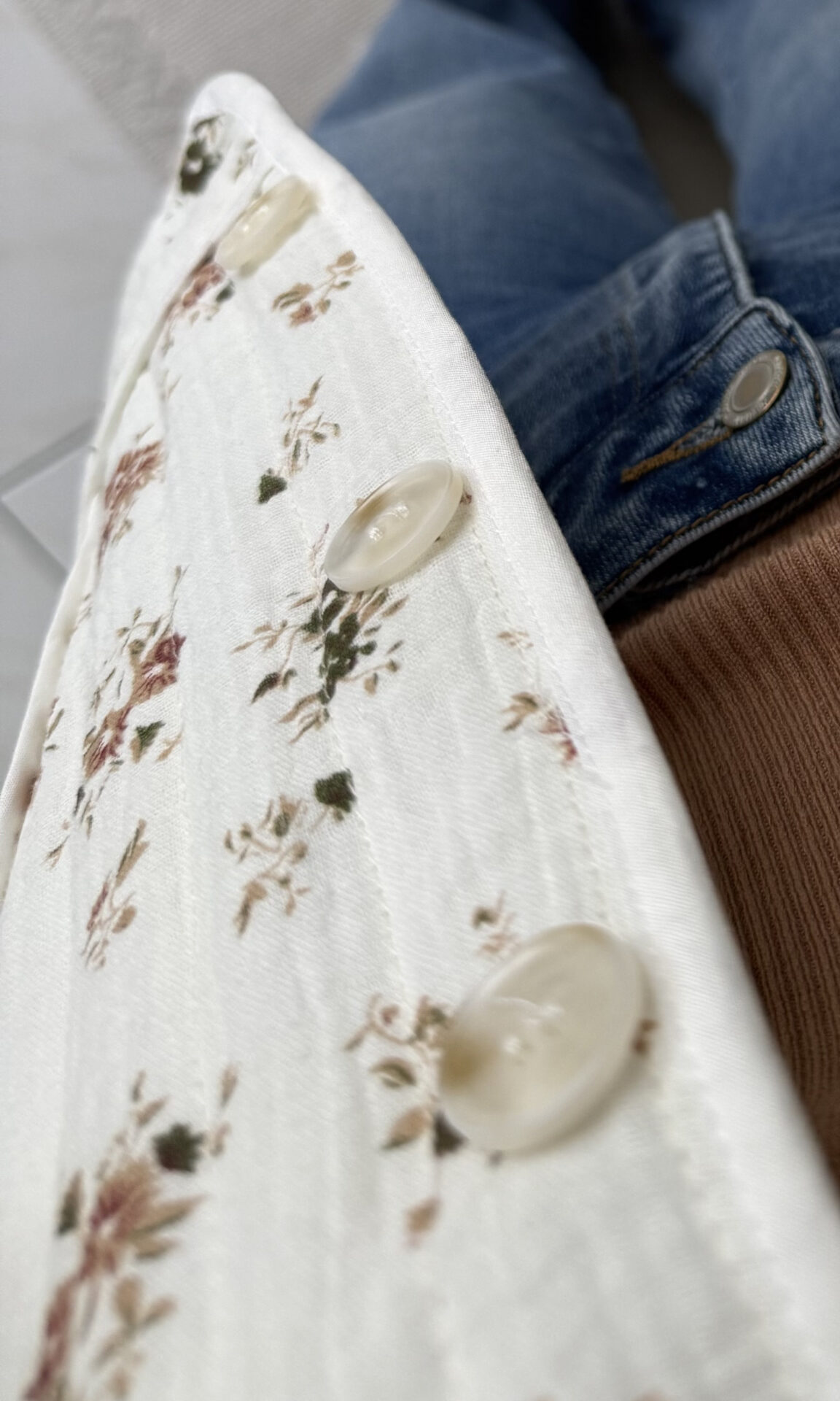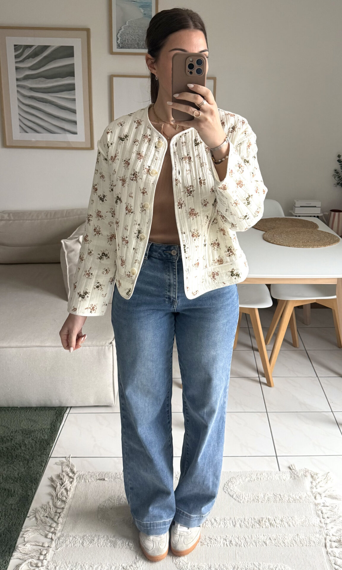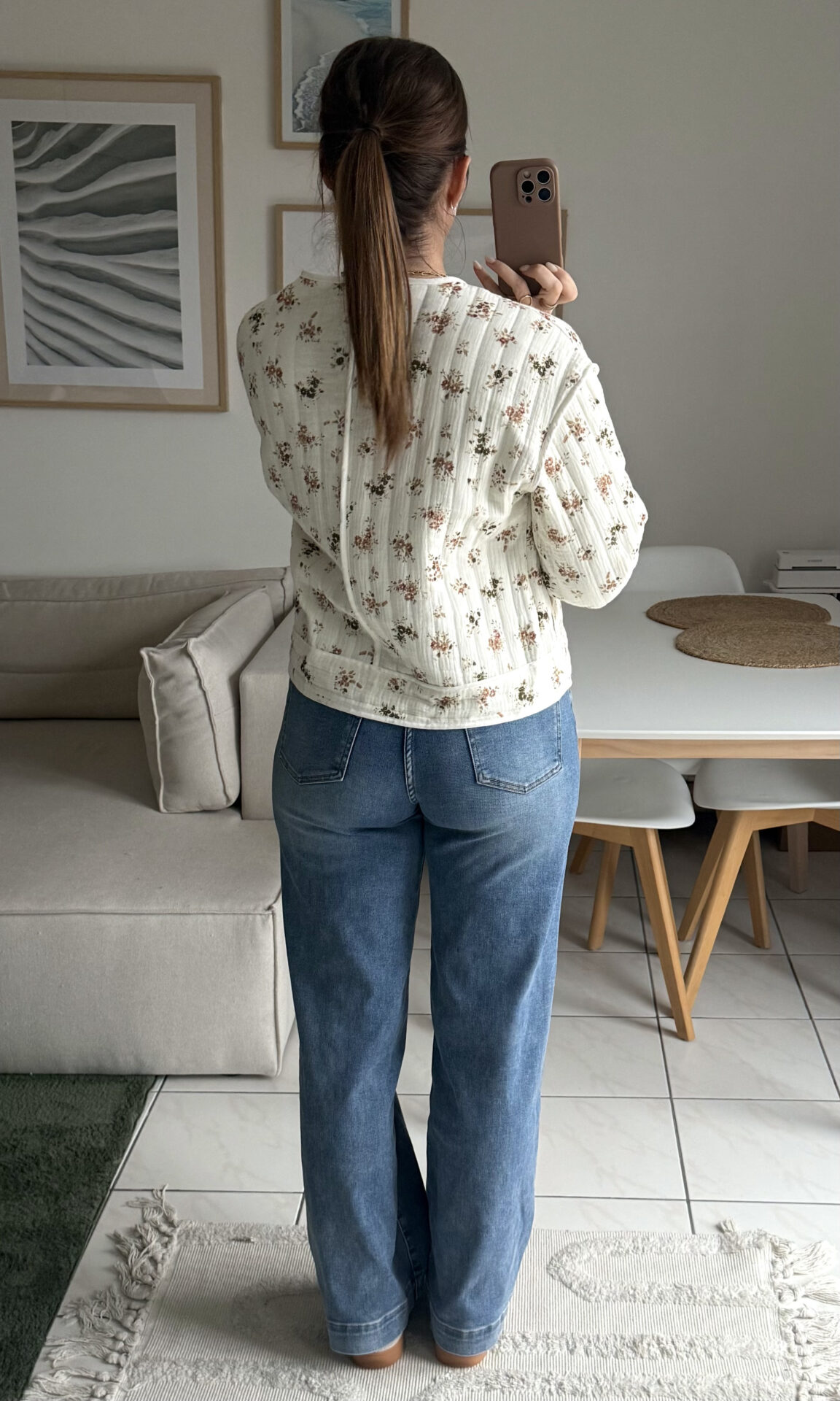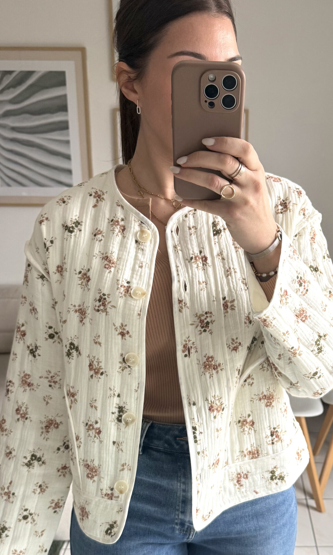 Succombez au romantisme de la veste matelassée Mila à la teinte blanc cassé lumineuse sublimée par de délicates petites fleurs printanières. Fine & légère, elle sera parfaite pour la mi-saison !